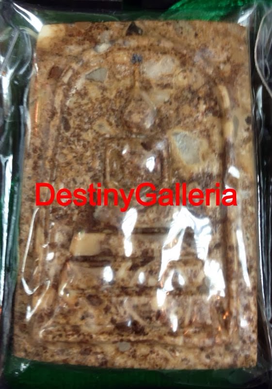 Phra Buddha Somtie (Relic material) from Khao Sam Roi Yod, Prachuab Kirikhan. This is a Buddha image carved out of a raw slab of relic. A good mixture of some colour halos can be seen on the slab. They are found in Khao Sam Roi Yod mountain in Prachuab province and possess powerful holy energy even without being blessed. Excellent for boosting merit, metta, health and protection from all danger. Also very good for praying and focusing the mind during meditation. Consecrated in 2537.